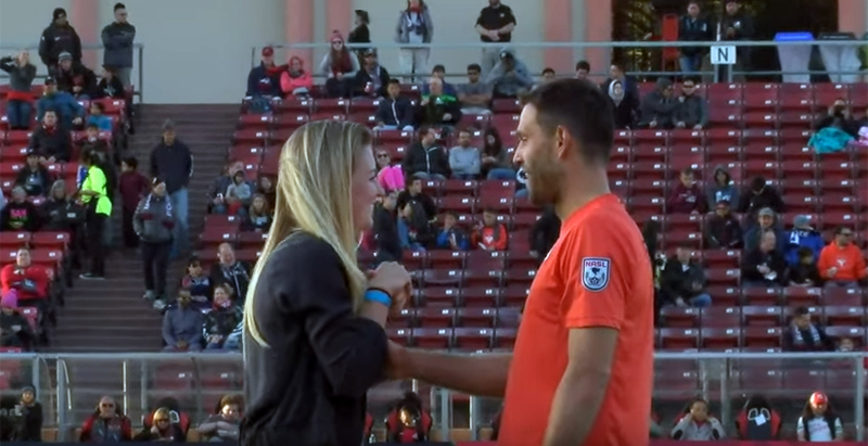 لاعب يطلب يد حبيبته خلال مباراة كرة قدم