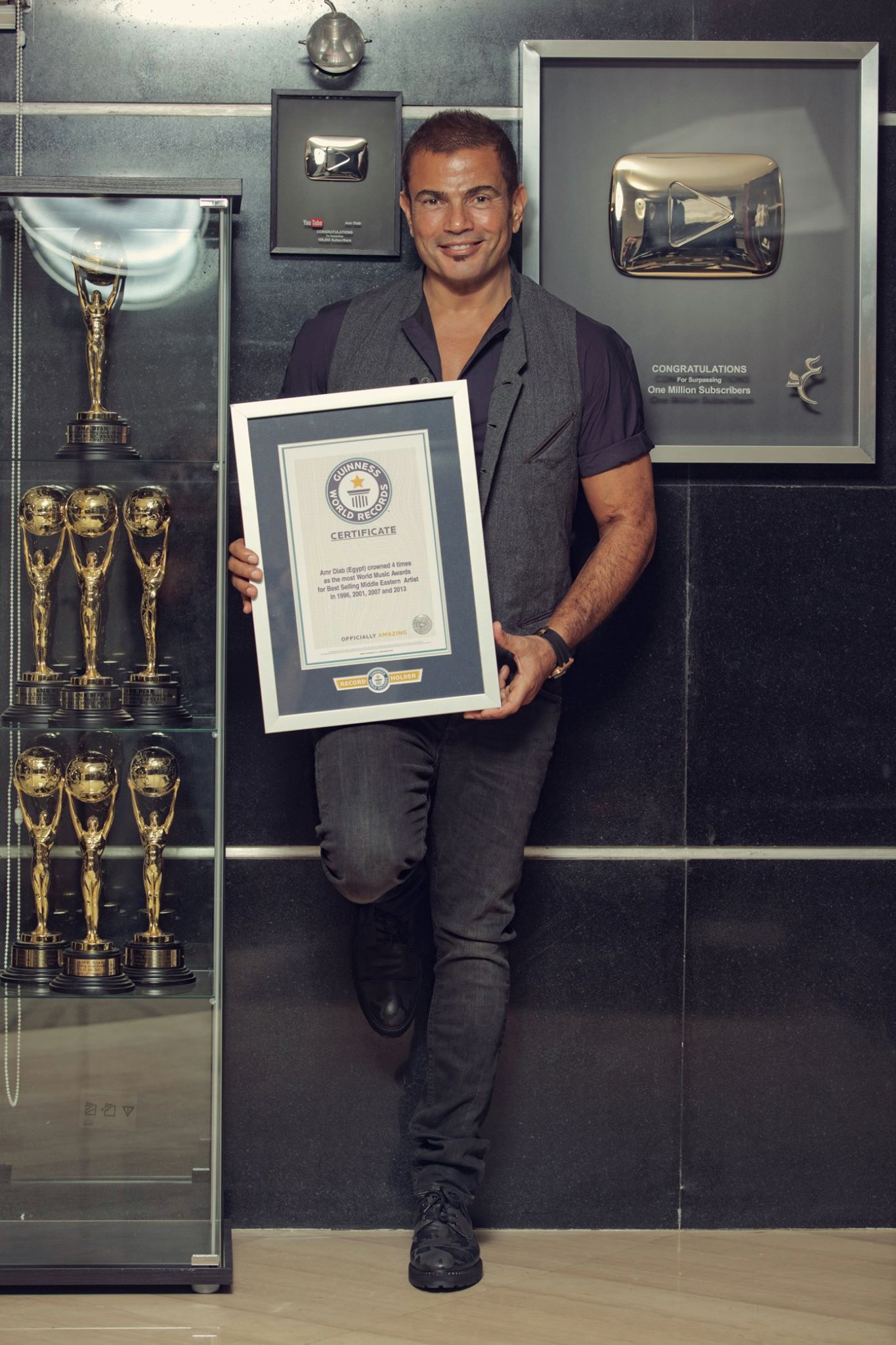 وجاء في صفحة عمرو دياب ما يلي :"سجلت موسوعة غينيس العالمية للأرقام القياسية الفنان عمرو دياب كأول مطرب عربي يحصل على أكبر عدد من جوائز الموسيقى العالمية لأكثر مبيعات في الشرق الأوسط".