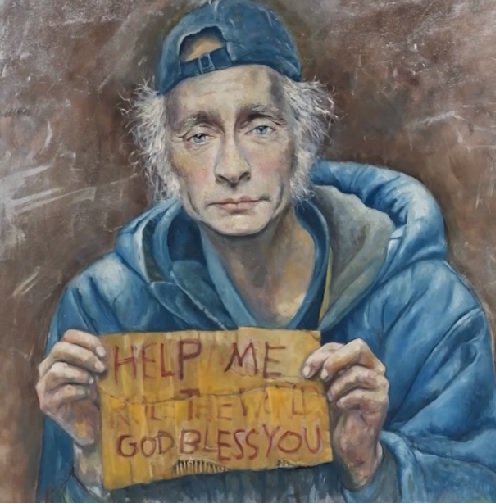 الفنان السوري عبد الله العمري تخيّل زعماء العالم ضمن أفواج من اللاجئين هربا من الحرب وبحثا عن مكان آمن وفي طوابير طويلة في انتظار ما يخفّف معاناتهم أو على قوارب الموت في مواجهة مصير مجهول...