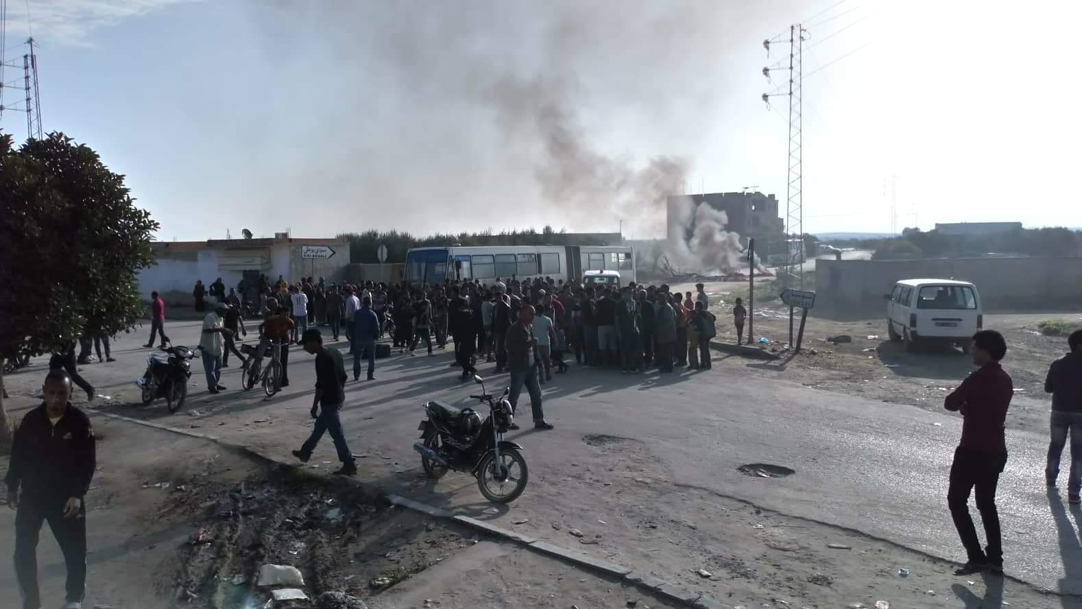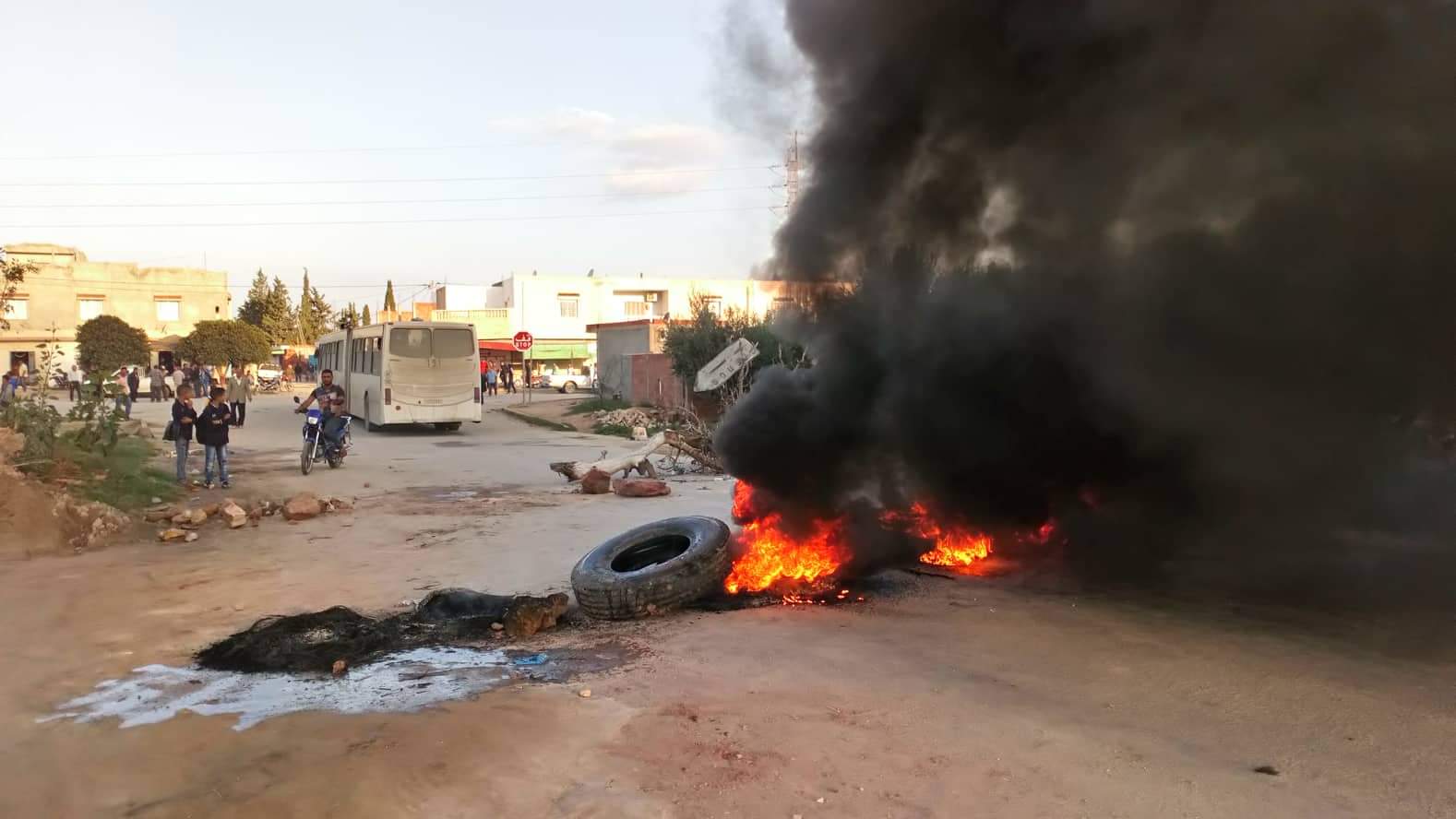 النفيضة: محتجون يشعلون عجلات مطاطية ويغلقون الطريق