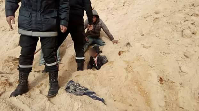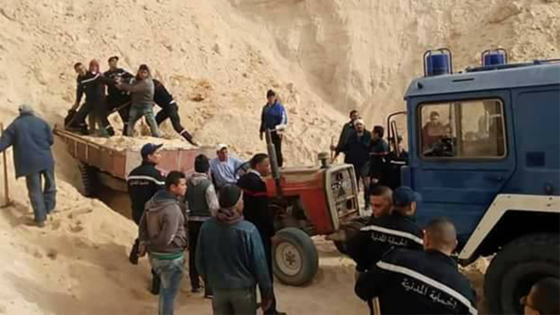 توزر: إنقاذ عاملين من إنهيار مقطع للرمال (صور)