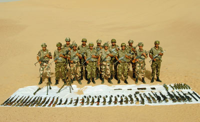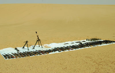 كشفت مفرزتان للجيش الجزائري اليوم الأحد 13 أوت 2017، عن مخبأ للأسلحة بمنطقة برج باجي مختار على الحدود مع دولة مالي به 40 قطعة وهي قاذفين صاروخيين من نوع RPG- و4 رشاشات من نوع PKT، ورشاشين من نوع FMPK، و4 رشاشات من نوع RPK، و14مسدس رشاش من نوع كلاشنيكوف، و7 بنادق نصف آلية من نوع سيمونوف، و7 بنادق تكرارية، بالإضافة إلى كمية معتبرة من الذخيرة من مختلف العيارات.