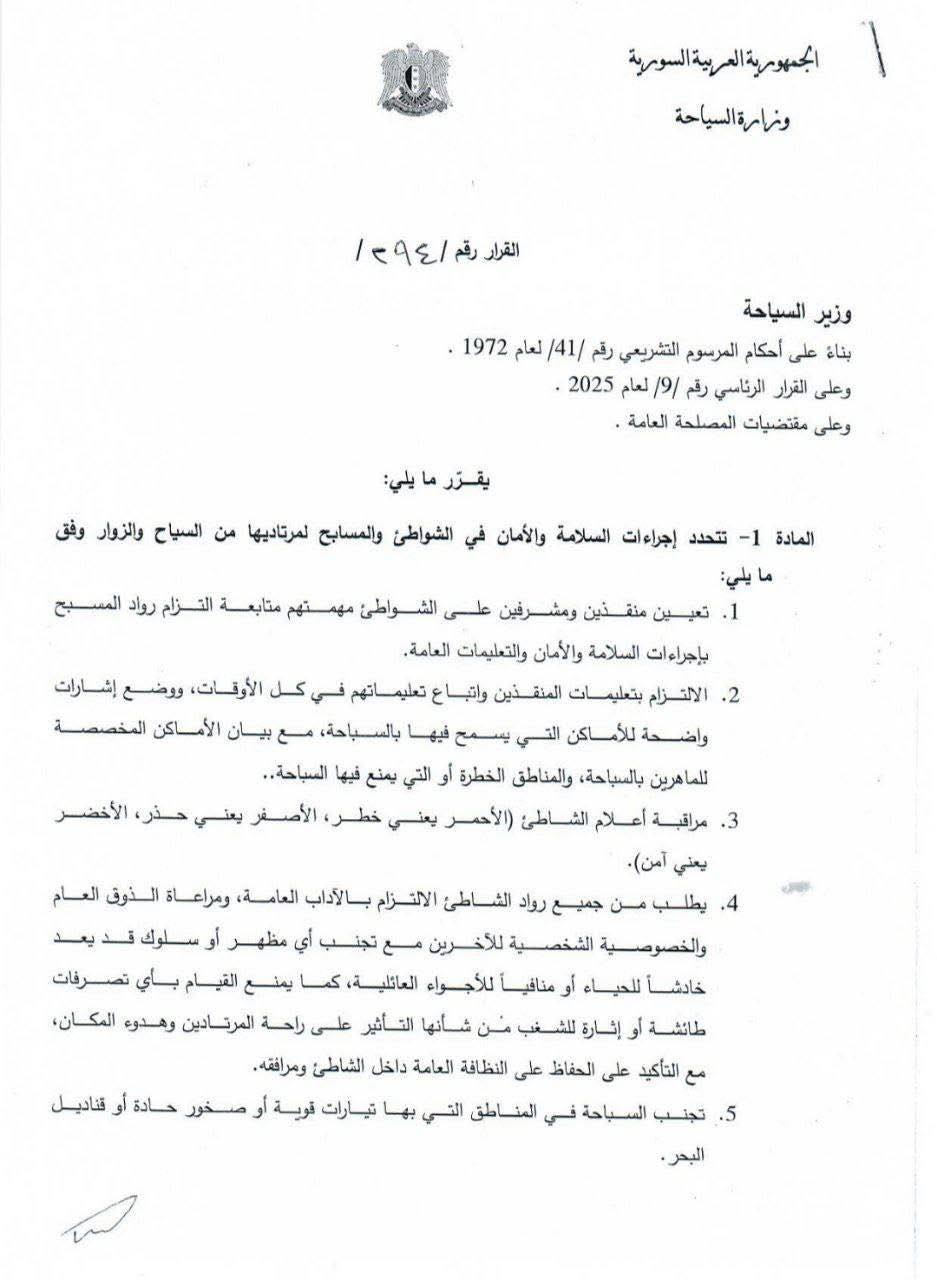 نشرت السلطات السورية، اليوم الثلاثاء 10 جوان 2025، تعليمات جديدة تضبط قواعد اللباس في الشواطئ والمسابح العامة، مطالبة الزوار بارتداء ملابس 'أكثر احتشاما'، والنساء بارتداء البوركيني أو تغطية الجسم.