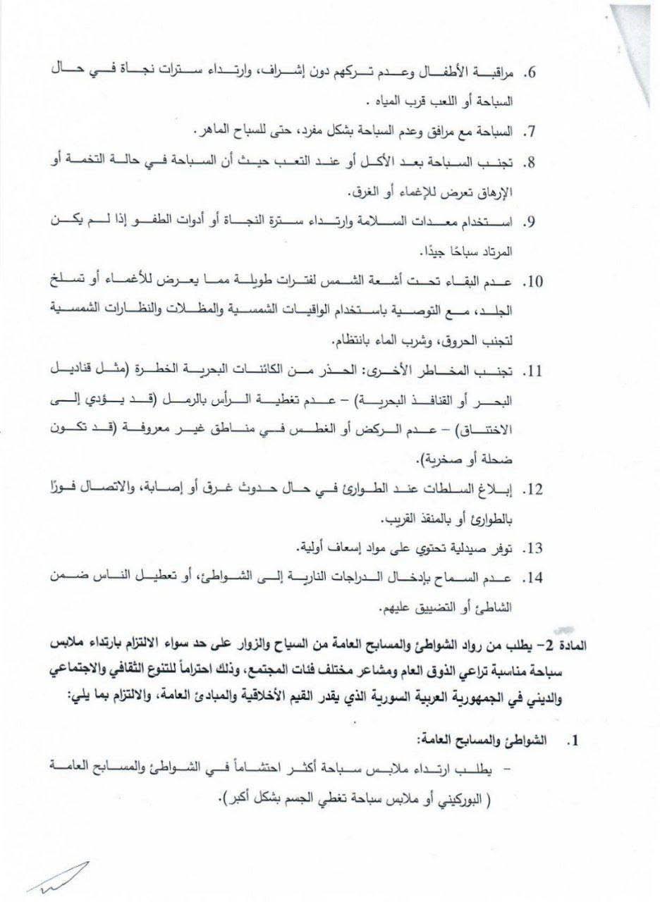 السلطات السورية تُحدّد ضوابط على اللباس في الشواطئ والمسابح العامة