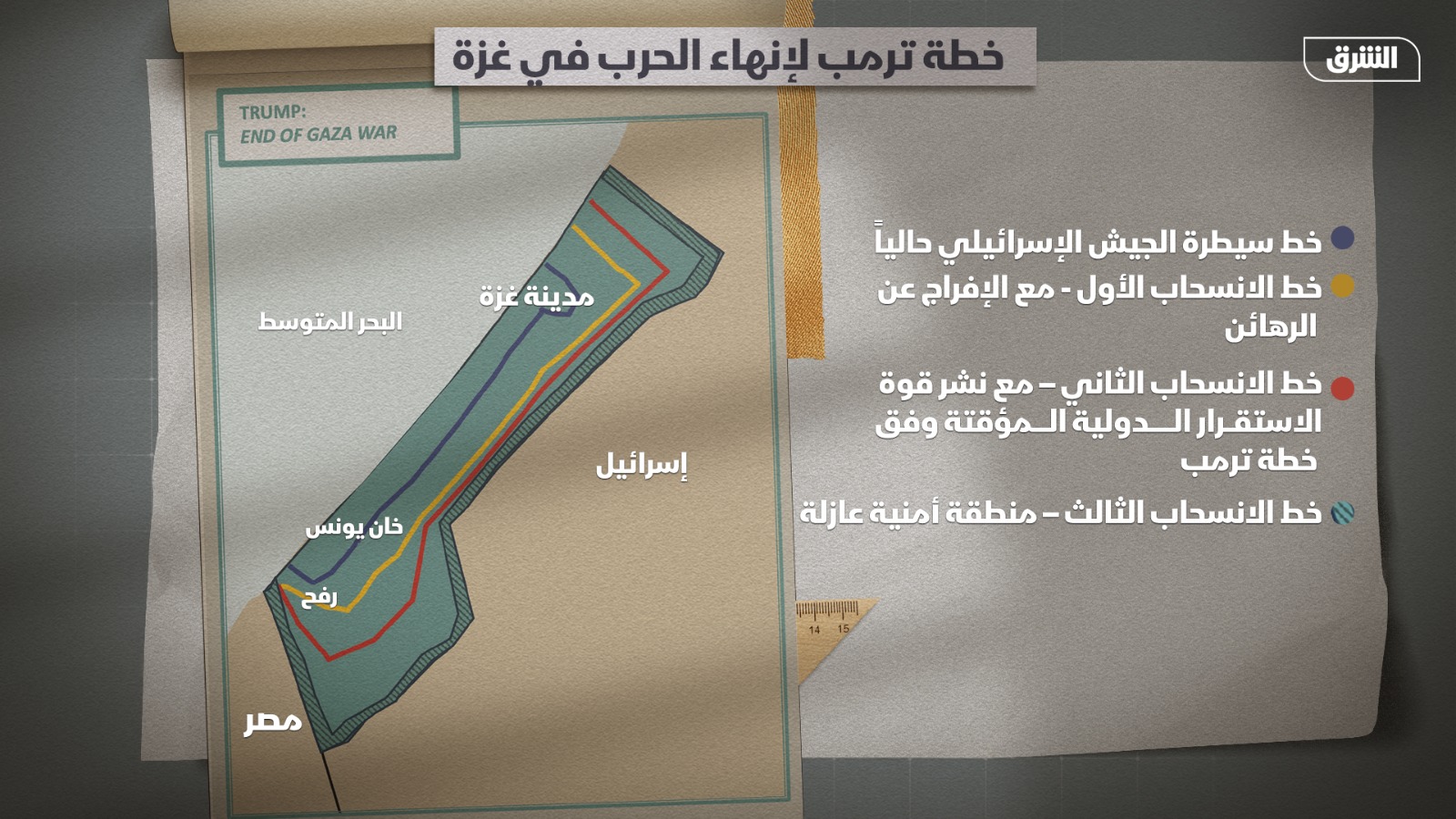 وأظهرت صور نُشرت صباح الأحد، من داخل غزة كتلًا إسمنتية مطلية باللون الأصفر، إلى جانب لافتات معدنية صفراء من المقرر تثبيتها عليها لتحديد الخط فعليًا.