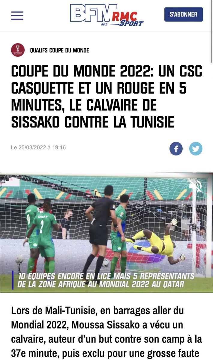 وبعد الانتصار، وصف "موقع بنكادي سبور" المالي هزيمة منتخب بلادهم بالقاسي والمحزن، مشيراً إلى أنه يتوجب الآن على اللاعبين بذل مجهود أكبر بكثير في ملعب رادس خلال مباراة العودة إن كانو يحلمون حقاً بالمرور إلى المونديال.