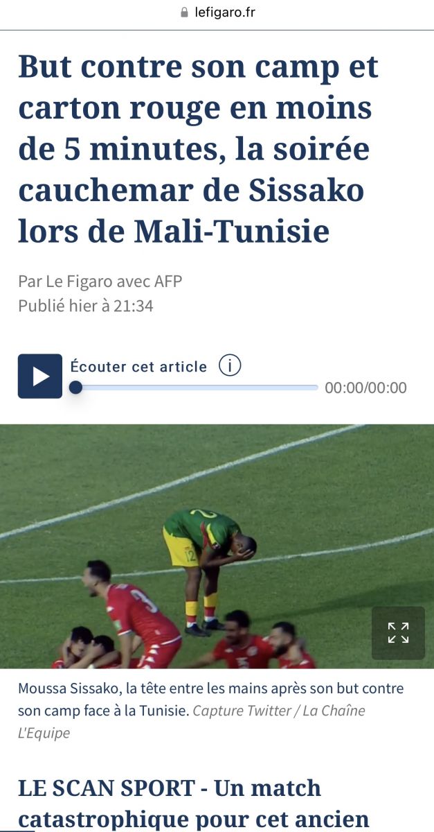 من جهتها، أجمعت الصحف والمواقع الفرنسية على أن انتصار تونس ضد مالي سيسمح لنسور قرطاج بخوض مباراة العودة بأريحية أكبر، متحدثة في ذات الوقت عن الخطأ الذي قام به المدافع موسى سيساكو الذي سجل هدفاً ضد مرماه قبل أن يتحصل على ورقة حمراء بعد ذلك بخمس دقائق،واصفة الليلة التي عاشها لاعب ستاندار لياج بالكابوس الذي لن ينساه بسرعة.