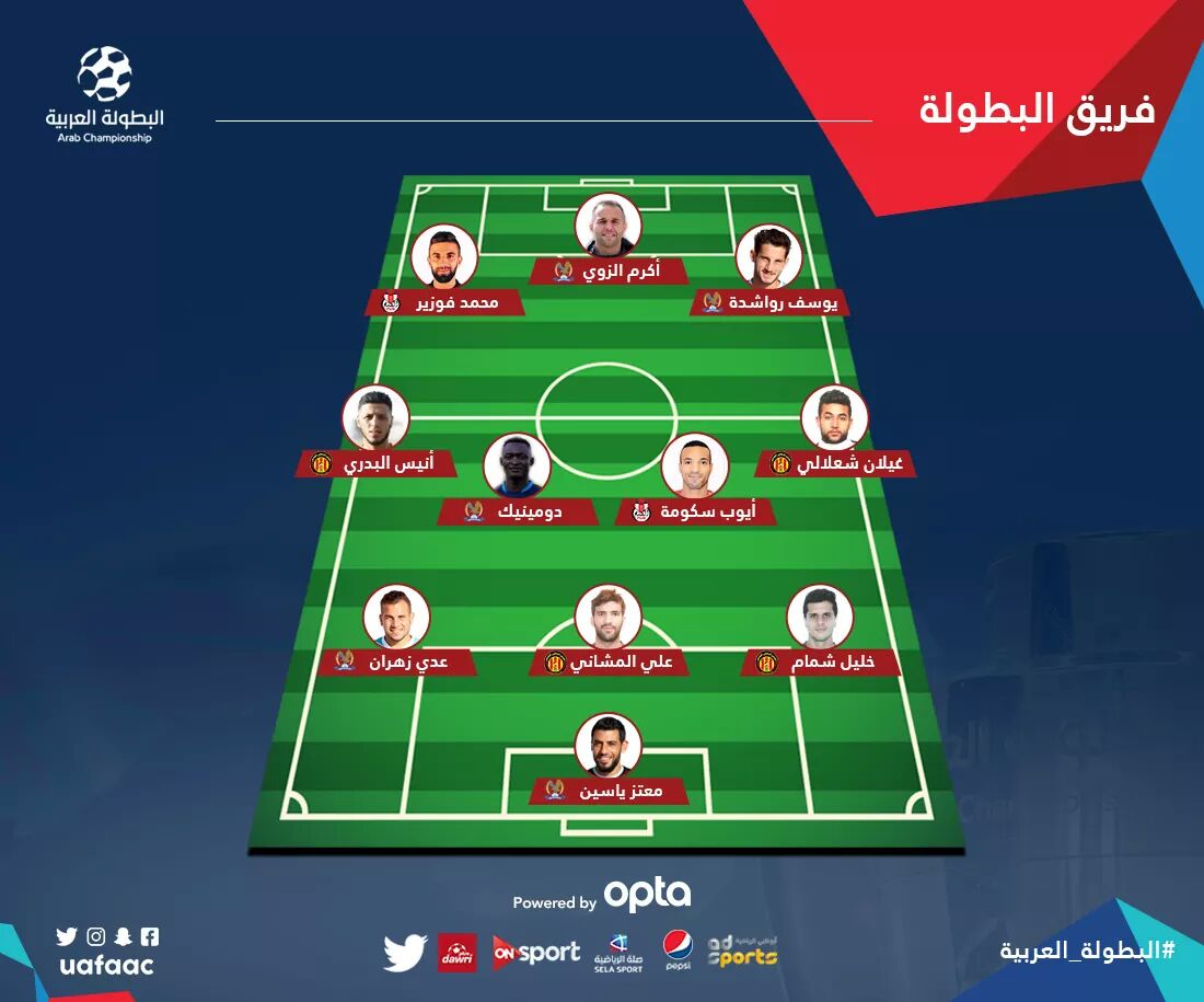 وفيما يلي التشكيلة المثالية كاملة للبطولة العربية: