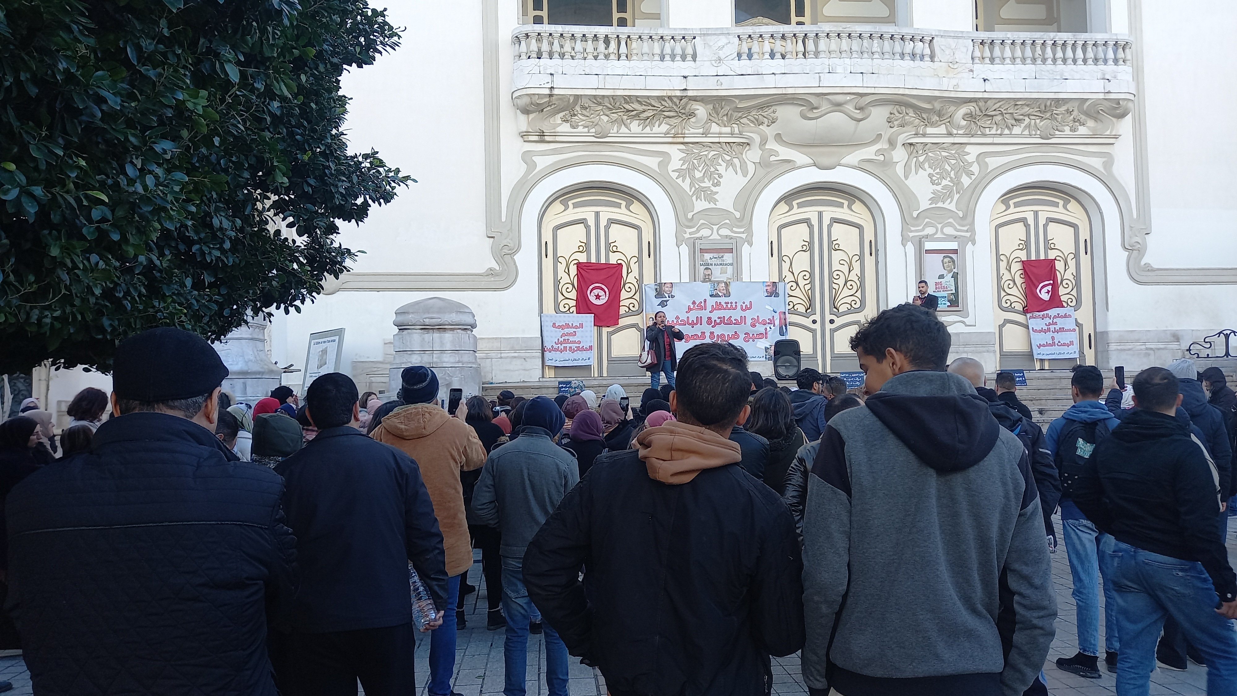 نفذ عدد من الدكاترة المعطلين عن العمل اليوم السبت 13 جانفي 2024،  وقفة احتجاجية أمام المسرح البلدي بالعاصمة للمطالبة بتسوية شاملة لملف الدكاترة المعطلين لانتدابهم، وفق ما أفادت به منسقة عن حراك الدكاترة الباحثين المقصيين عن العمل ايمان الخياري لموزاييك.