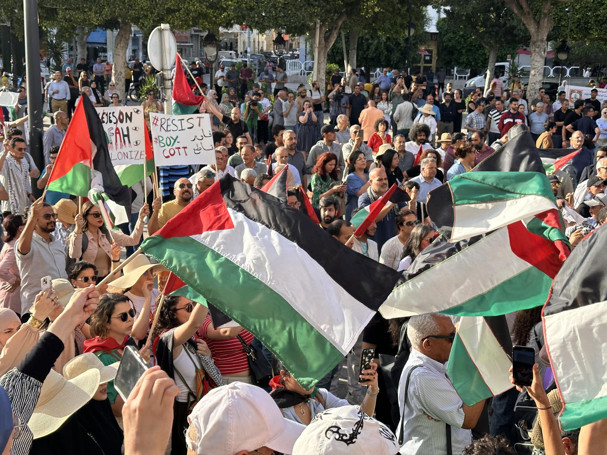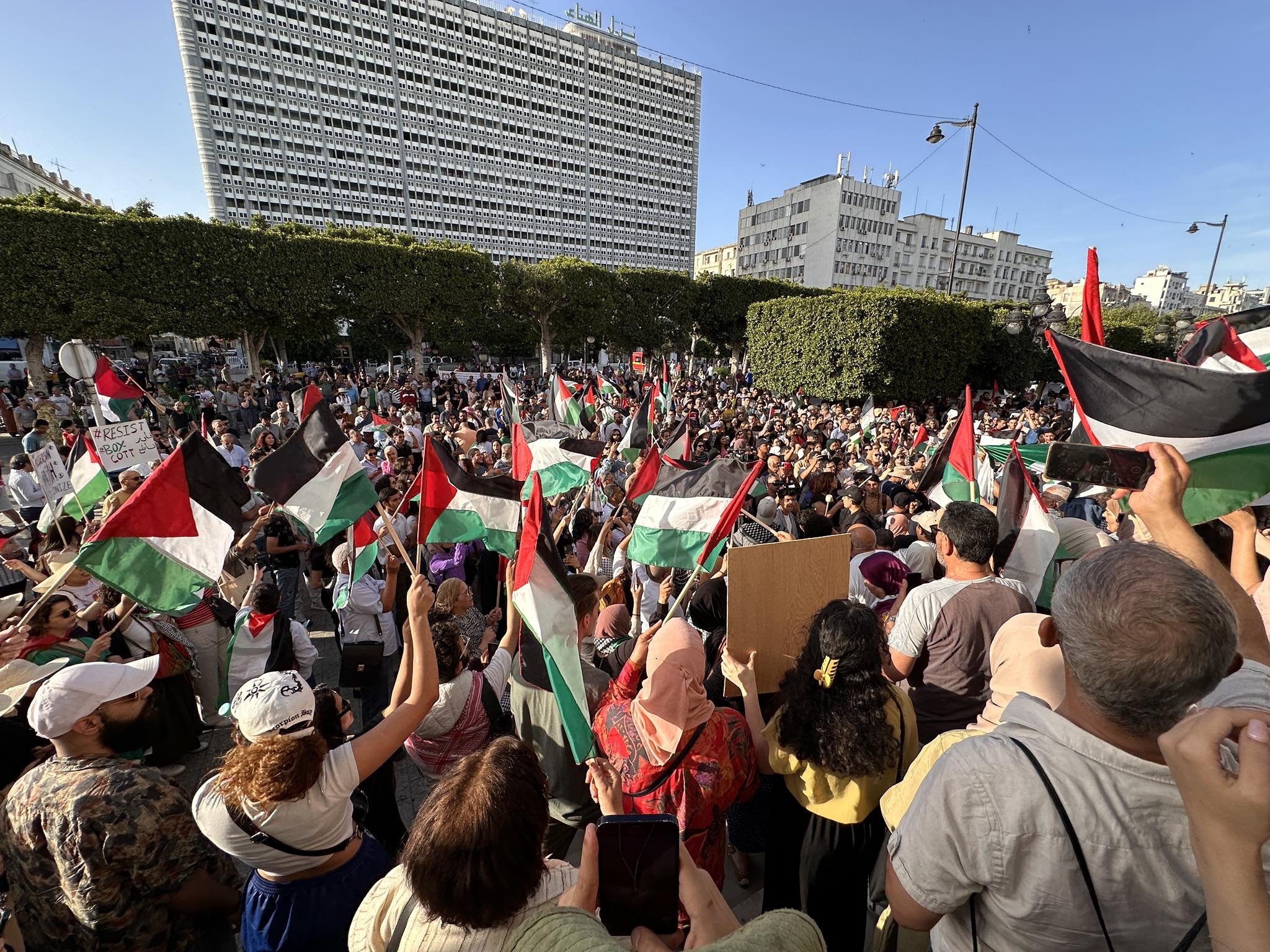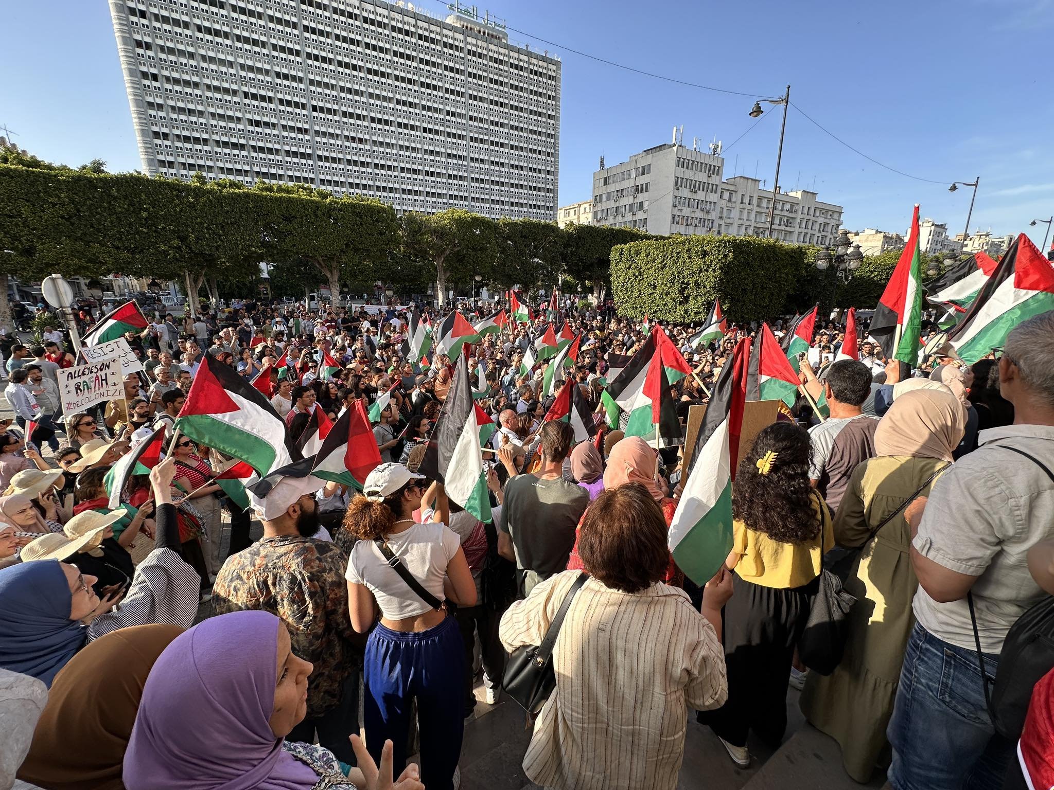 تنديدا بمحرقة الخيام التي ارتكبها أمس الاحتلال الصهيوني في محافظة رفح التي تعج بالنازحين، نفذ اليوم الاثنين 27 ماي 2024، ناشطون حقوقيون وممثلو منظمات مجتمع مدني وعدة شخصيات من مختلف التيارات السياسية بالبلاد، وقفة احتجاجية رافعين شعارات مناصرة للقضية الفلسطينية على غرار '' الشعب يريد تجريم التطبيع'' ''عار عار رفح شعلت نار'' .