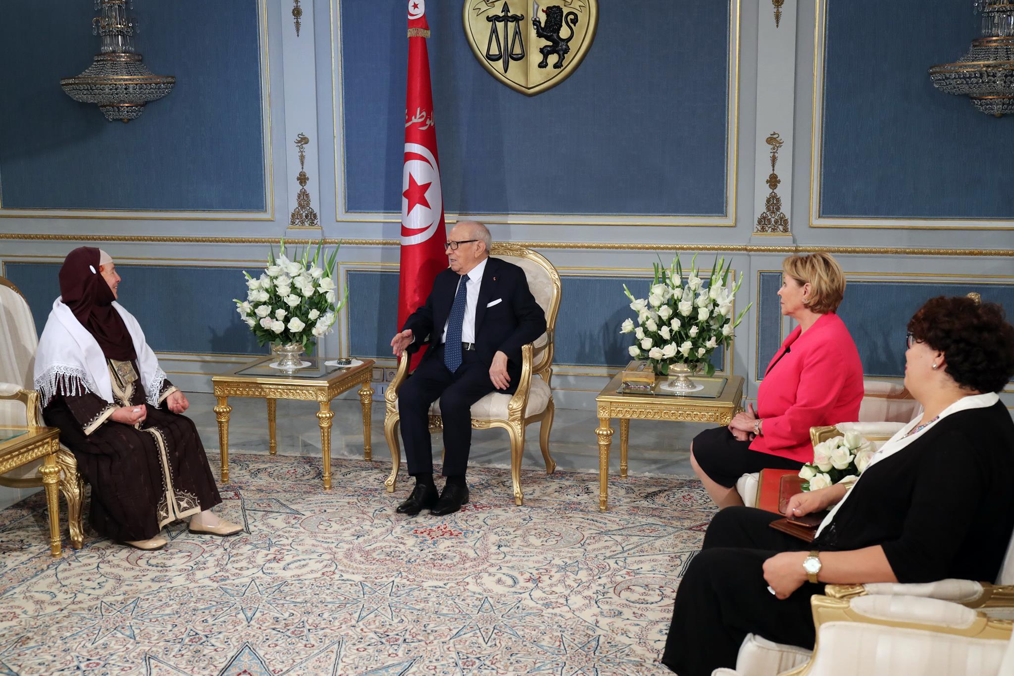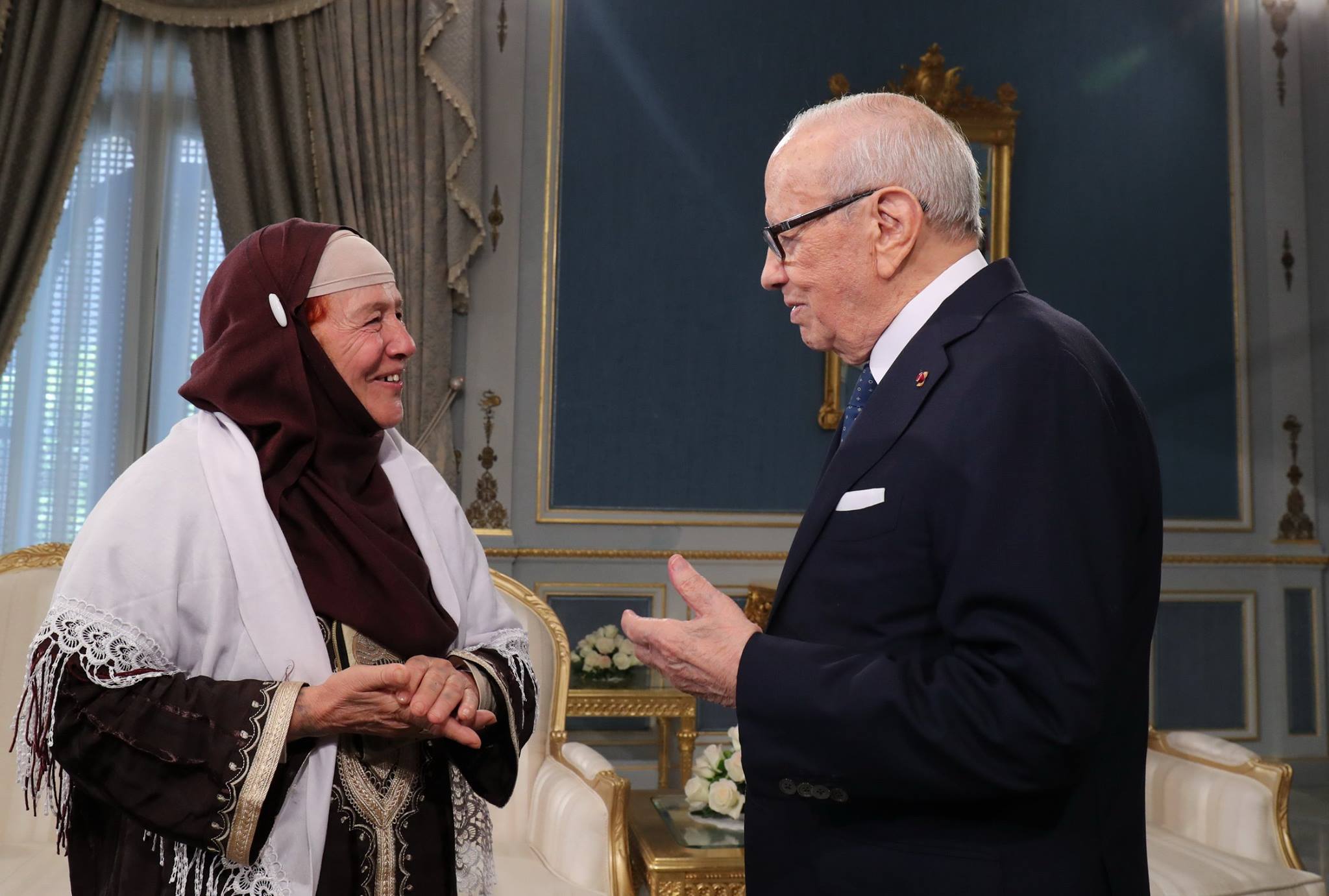 استقبل رئيس الجمهورية الباجي قايد السبسي اليوم الثلاثاء 25 أفريل 2017 بقصر قرطاج، فاطمة الغزلاني أم شهيد الجيش الوطني العريف سعيد بن عبد الوهاب الغزلاني.