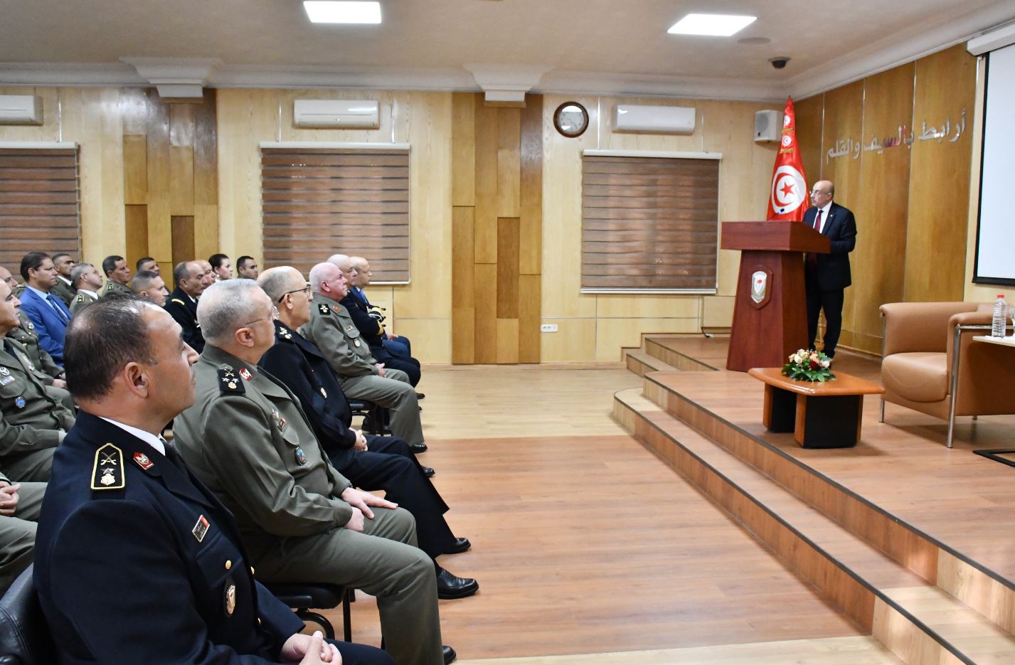 كما قدّم الوزير، جملة من التدابير والبرامج والإجراءات الضرورية، التي يجب ان ترتكز عليها المقاربة على المدى القريب والمتوسّط والبعيد، والتي تخصّ المجالات الاجتماعية والاقتصادية والأمنية، مؤكدا أنّ معهد الدفاع الوطني هو الفضاء الوحيد الذي يبحث فيه نخبة من سامي الإطارات الوطنية مدنيين وعسكريين، في مفاهيم جوهرية وتقديم رؤى مستقبلية حول قضايا تتعلق بميادين دقيقة ترتبط بسيادة تونس واستقرارها ونموها، والغوص أكثر في المسائل الإستراتيجية برؤية استشرافية مسؤولة.