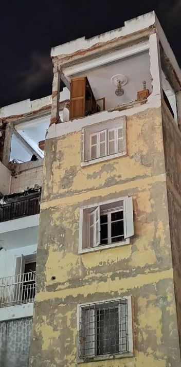 وحسب صور وفيديوهات متداولة على مواقع التواصل الاجتماعي، فقد تسبب الانفجار في انهيار جدران شقق في الطابق العلوي للعمارة.