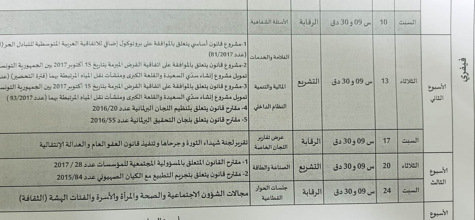 وفي ما يلي الرزنامة التي صادق عليها المكتب اليوم: