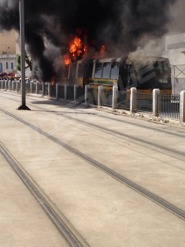 احترقت حافلة تابعة لشركة نقل تونس اليوم الثلاثاء 24 أفريل 2018، على مستوى شارع المحطّة قرب محطة برشلونة بالعاصمة بسبب عطب في المحرك.