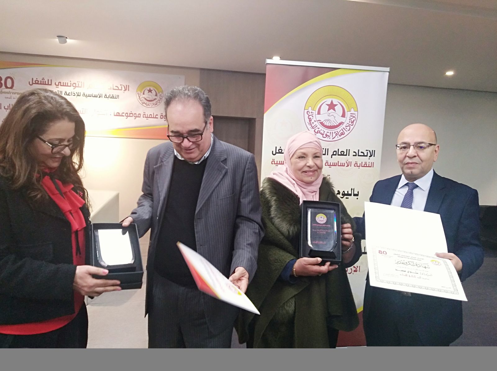 وإستغل الطبوبي حضور نحو 4 وزراء لتمرير هذا الطلب، مشددا على ضرورة الابتعاد عن الخطابات والشعارات في الحديث عن المبدع أو الإعلامي، وذلك خلال مؤتمر حول "الحوار والتسامح والسلام في الخطاب الإذاعي" بمناسبة مرور 80 عاما على تأسيس مؤسسة الإذاعة التونسية.