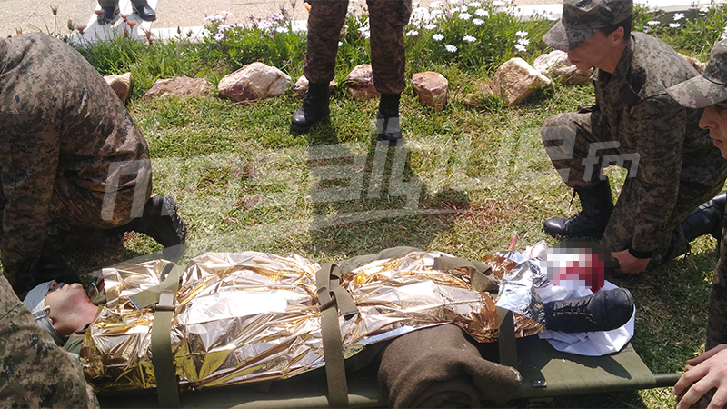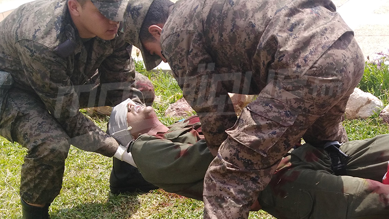 إلتحقوا أمس الأربعاء 17 أفريل 2019 بساحة فيها جندي ملقى يتألم ويداه ترتعشان والدماء تكسو وجهه وصدره وقدمه اليسرى اثر إصابته بانفجار لغم وفي الجانب الأخر جندي ثان يصرخ من شدة أوجاعه على مستوى البطن بعد إصابته بطلق ناري هم لم يقفوا أمام صراخ الألم ومنظر الدماء مكتوفي الأيدي أو ضعفاء بل تحركوا بسرعة لإنقاذ الجنديين المصابيين بشجاعة وقلب قوي. هم تلاميذ المدرسة العليا للصحة العسكرية في تمرين ميداني على كيفية إنقاذ جنود مصابين على أرض الوغى يتدربون على وضع الرباط التكتيكي لتفادي مضاعفات صحية وتقليص نسب الخسائر البشرية للجندي المصاب على مستوى الساق وقد وضعت على عيناه ضمادة تحضيرا لعميلة إجلاءه من ساحة المعركة والمواجهات مع الإرهابين.