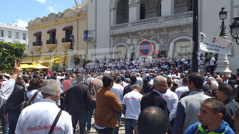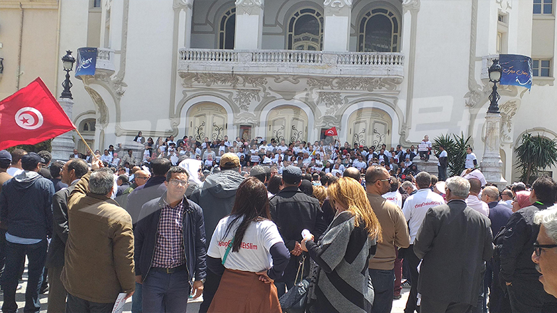 خرج منظورو إتحاد الأستاذة الجامعيين الباحثين "إجابة" المعتصمون بمقر وزارة التعليم العالي اليوم السبت 4 ماي 2019 في مسيرة توقّفت أمام المسرح البلدي في شارع الحبيب بورقيبة بالعاصمة.