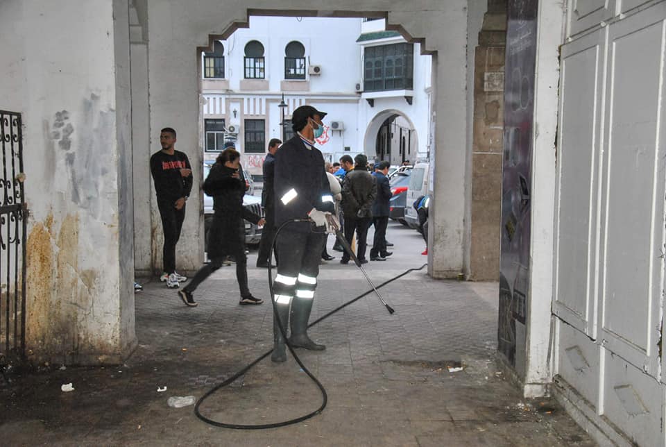 قامت بلدية تونس بمختلف مصالحها (إدارة حفظ الصحة وحماية المحيط وإدارة النظافة وإدارة الشرطة البيئية)، مساء أمس الاثنين 16 مارس 2020 بحملة نظافة وتعقيم واسعة النطاق، وشملت المنطقة البلدية بباب سويقة بإشراف سعاد بن عبد الرحيم رئيسة بلدية تونس شيخة المدينة.