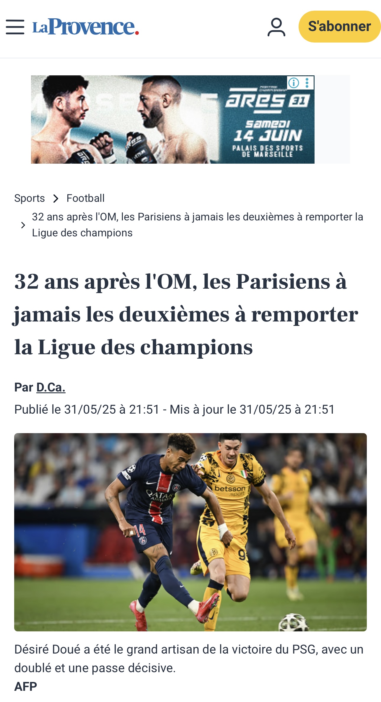 وفي سياق حديثها عن تتويج باريس سان جيرمان، أفردت الصحف العالمية ديزيري دوي بتكريم خاص، حيث نوّهت بمستوى اللاعب البالغ من العمر 19 سنة و 362 يومًا خلال نهائي يوم أمس السبت، ضد الإنتر.