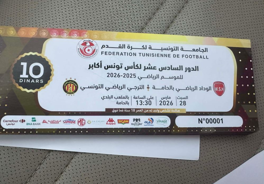 تقرر الجمعة 27 مارس 2026 توفير 50 تذكرة إضافية لجماهير الوداد الرياضي بالحامة خلال المقابلة التي ستجمع الفريق غدا السبت بالترجي الرياضي التونسي ضمن الدور 16 لكأس تونس .
