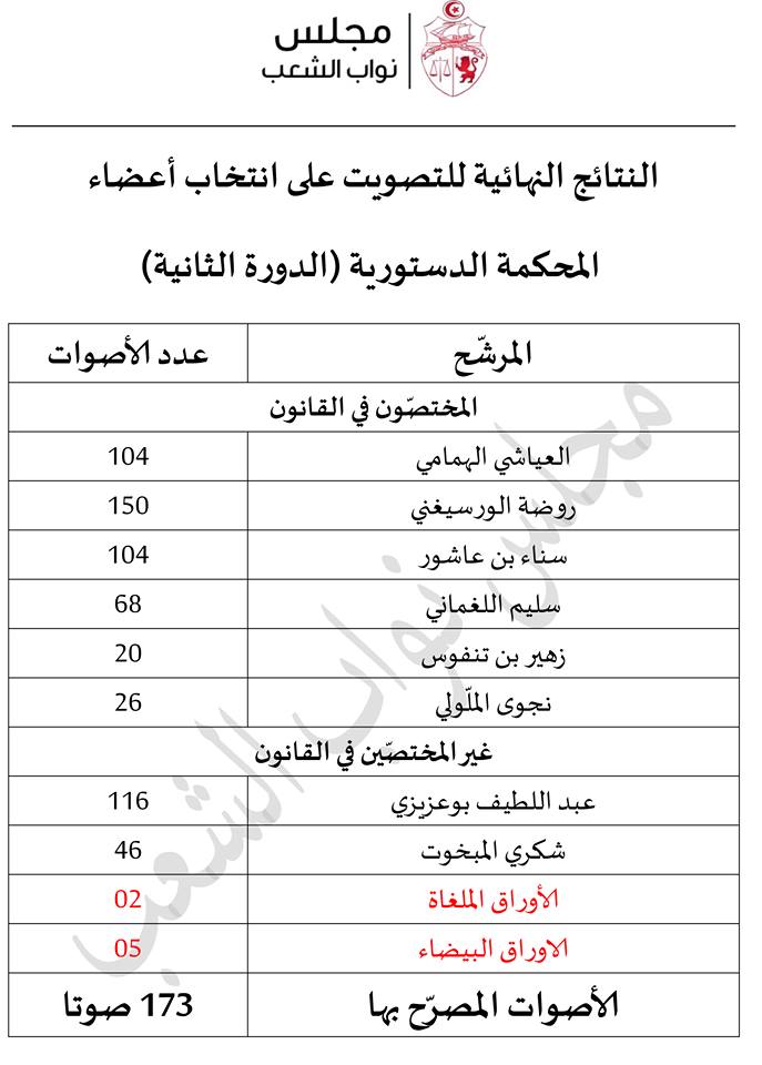 Au second tour, seule la candidate Raoudha Ouessighni a obtenu le nombre de voix nécessaires (150 voix).
