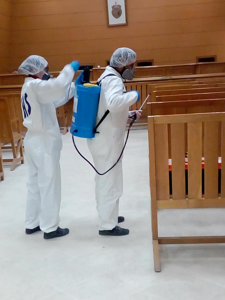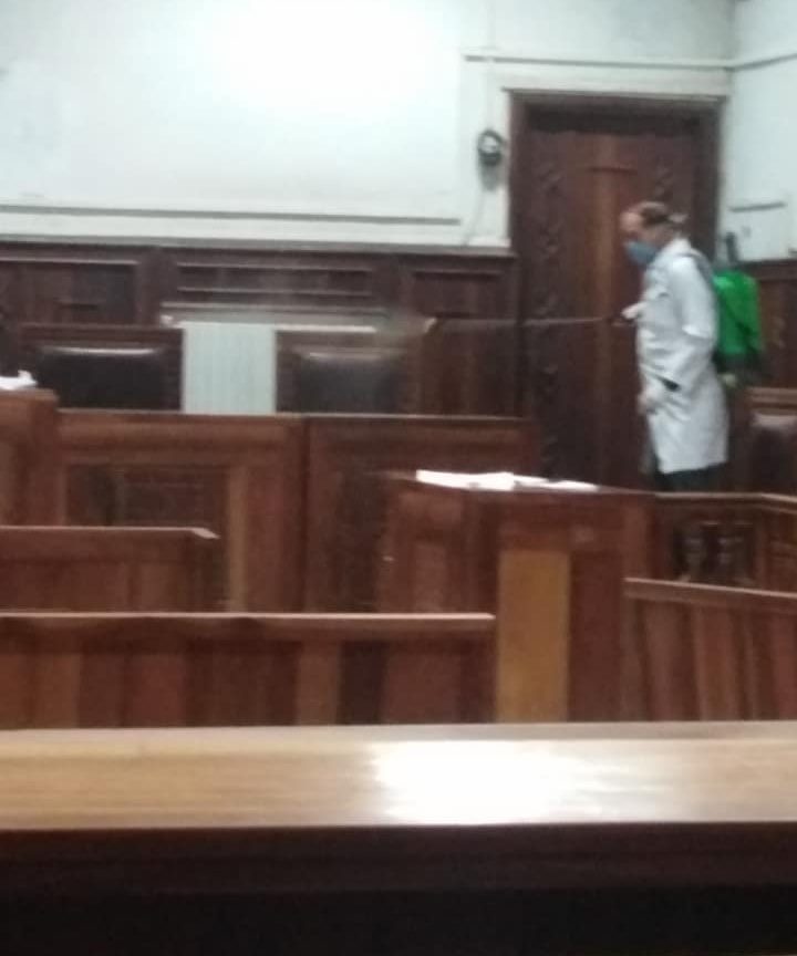 Le ministère de la Justice a publié sur sa page Facebook, ce mercredi 11 mars, des photos d'une campagne de désinfection des salles d'audiences, des bureaux et des réceptions dans les tribunaux de Tunis, pour prévenir contre le Coronavirus et pour protéger les employés et les citoyens.