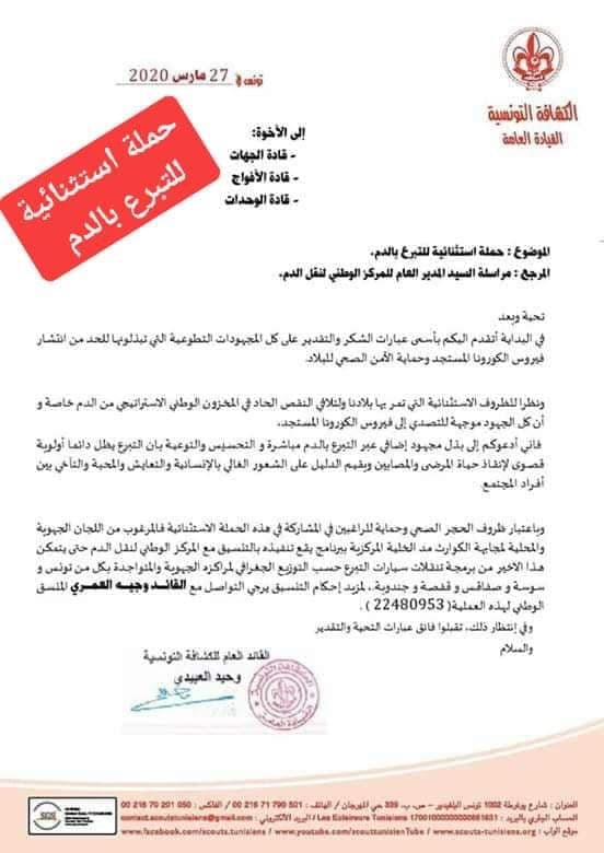 Les Scouts tunisiens ont lancé une campagne exceptionnelle de don de sang, vu la situation actuelle vécue par le pays à cause de la propagation du coronavirus.
