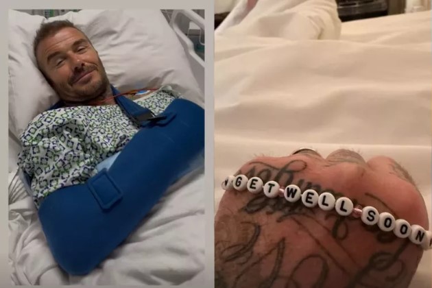 Dans la première story on peut apercevoir l'ancien capitaine de l'équipe d'Angleterre, le bras dans le plâtre. Dans la deuxième, on voit seulement le poignet de Beckham, habillé d’un bracelet tressé portant l’inscription "Bon rétablissement".