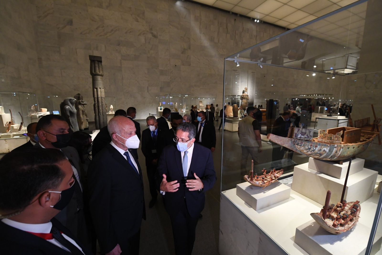 أدى رئيس الجمهورية قيس سعيّد مساء أمس الجمعة 9 أفريل 2021، مرفوقا بوزير السياحة والآثار المصري، زيارة لبعض المواقع التاريخية في القاهرة حيث إطلع على مكونات المتحف القومي للحضارة المصرية الذي تم افتتاحه مؤخرا، فضلا عن زيارة مسجد عمرو بن العاص وقلعة صلاح الدين الأيوبي.