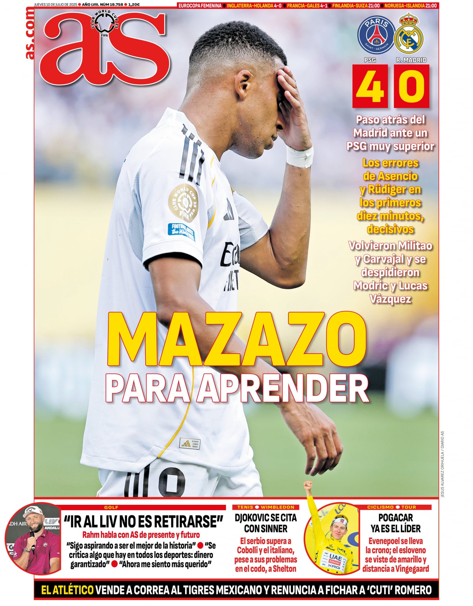 انقاد ريال مدريد مساء أمس الأربعاء 9 جويلية 2025 إلى هزيمة ثقيلة وصفها البعض "بالمُذلّة"، ضد باريس سان جيرمان برباعية نظيفة ضمن نصف نهائي كأس العالم للأندية المُقامة في الولايات المتحدة الأمريكية.
