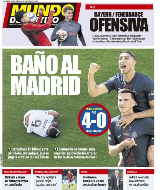 وألقت هزيمة النادي الملكي بضلالها على الصحافة في العالم وجاءت العناوين مختلفة بين من حمّل كيليان مبابي المسؤولية ومن اعتبر ما فعله لويس انريكي بالمُبهر.