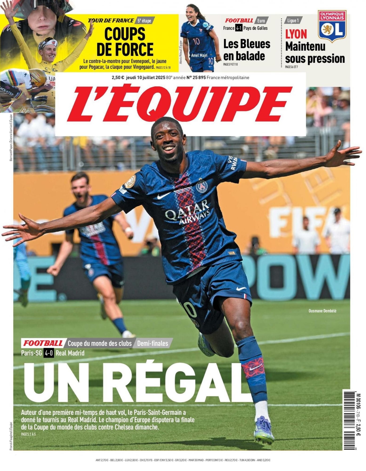 وتحدثت صحيفة لاغازيتا ديلو سبورت الإيطالية عن إنجاز المدرب لويس انريكي قائلة "من الإنتر إلى ريال مدريد.. لويس انريكي يُبهر الجميع.." في حين اختارت صحيفة ليكيب الفرنسية صورة للجناح الأيمن عصمان ديمبيلي وهو يحتفل بهدفه في شباك تيبو كورتوا مُرفقة إياها بعنوان "مُتعة.." في إشارة إلى الطريقة التي حقق بها باريس سان جيرمان الانتصار والتأهل إلى نهائي كأس العالم للأندية.